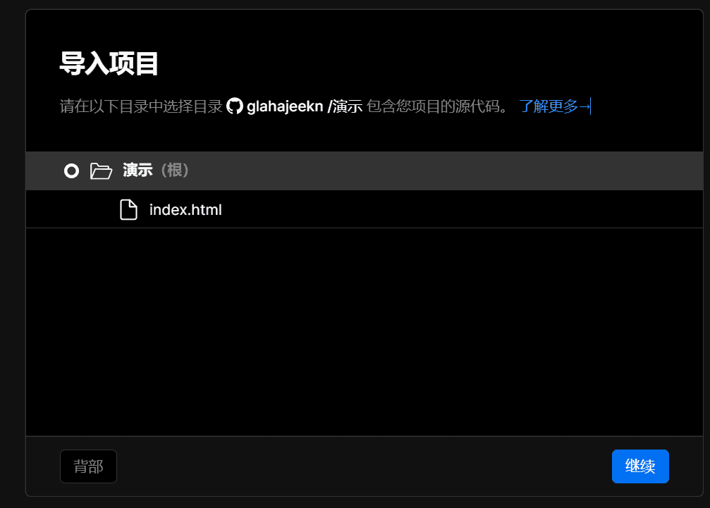 进入这个页面的时候注意,由于我们的仓库里放了一个 html,所以这里不要做任何设置直接点击蓝色的 Deploy 按钮